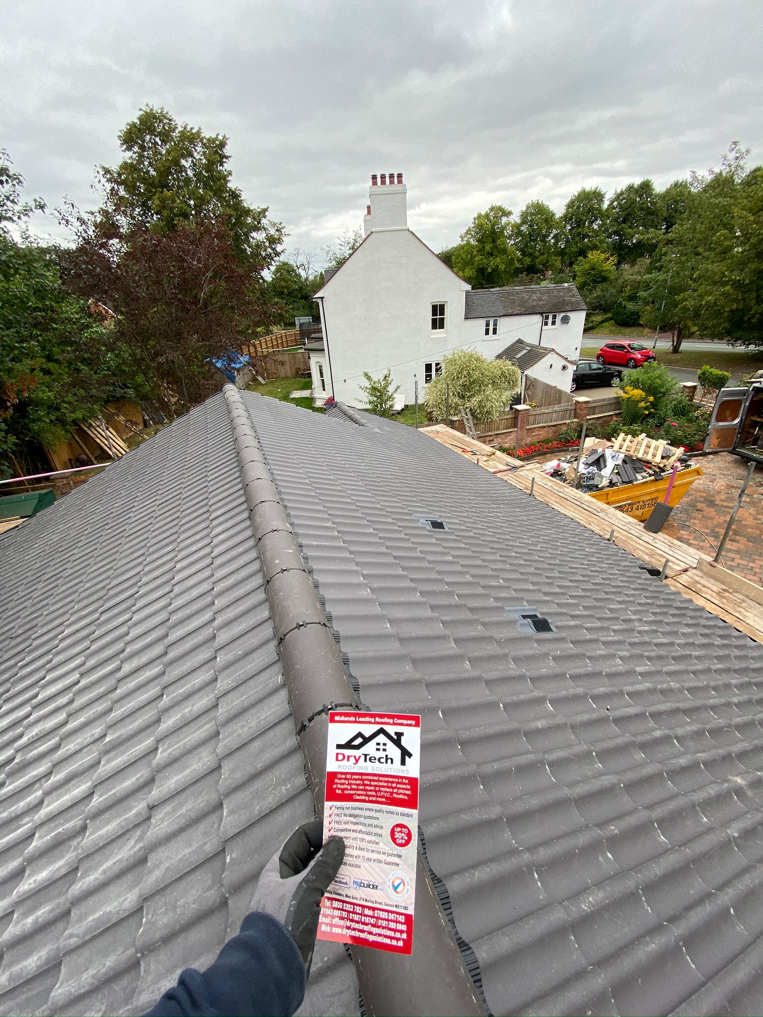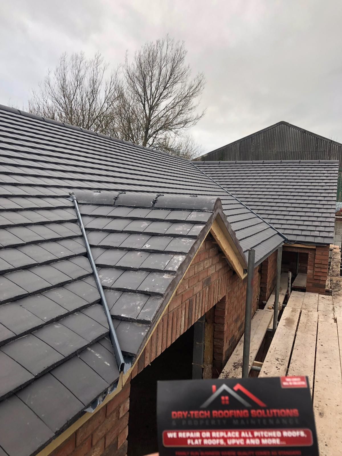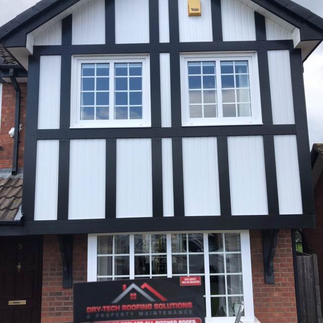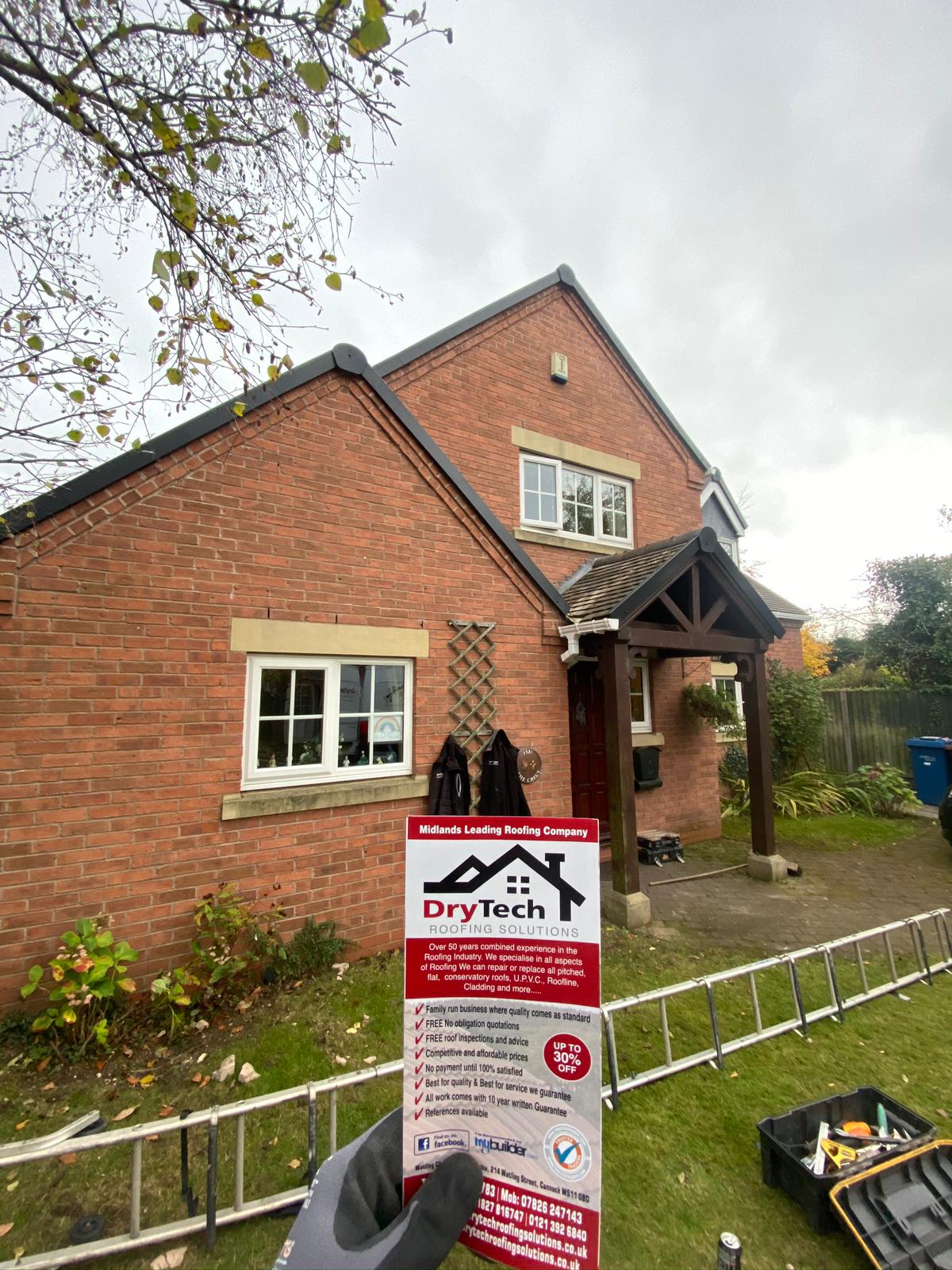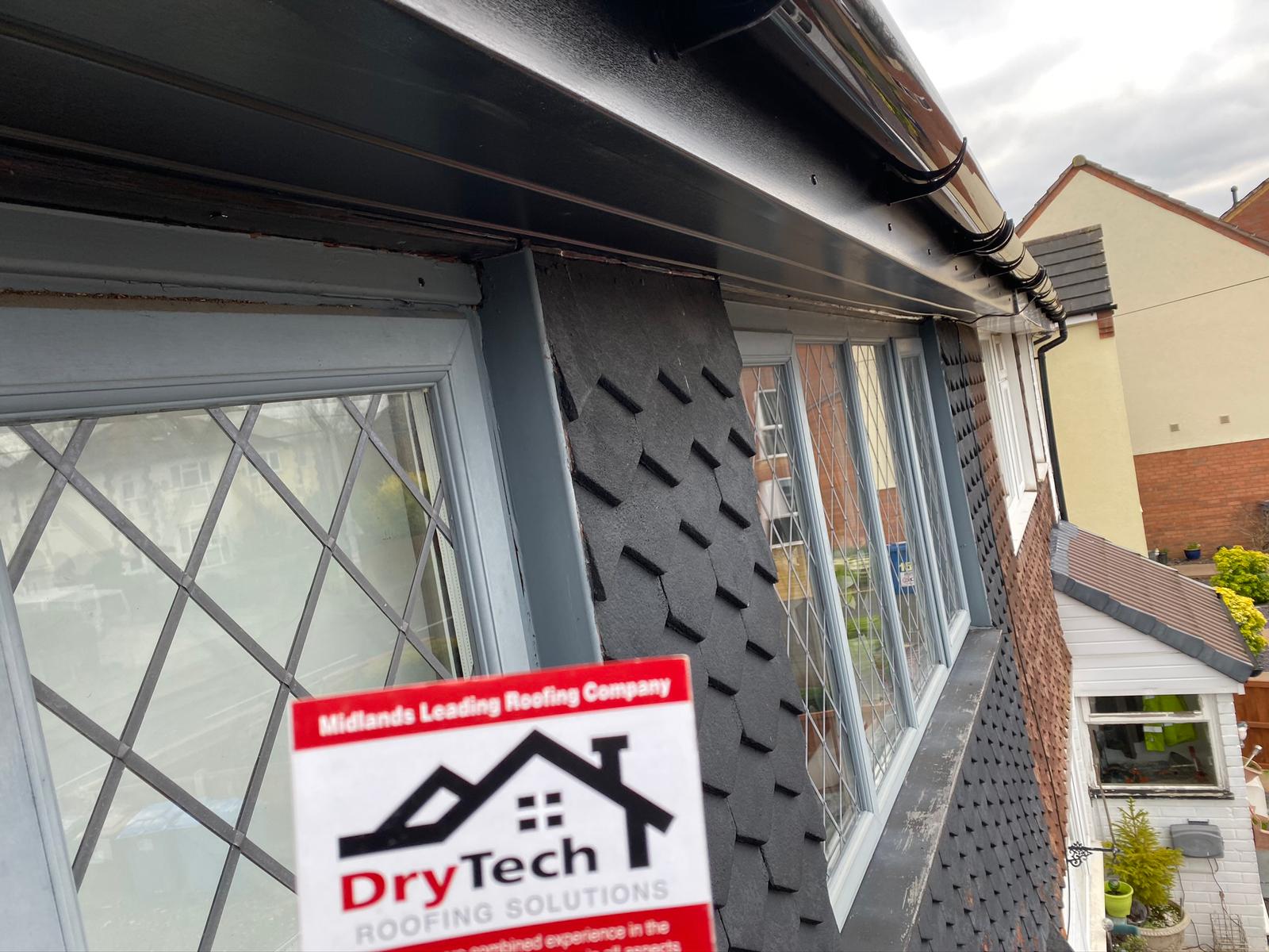 " Some issues had arisen with our roof, and so we contacted Dry Tech Roofing. Jamie came over promptly and identified the causes; he proposed the options of partial or complete roof replacement, and we decided on the latter. Our roof is somewhat complex in design, but its replacement was performed swiftly and with great skill by Jamie and his team. We also asked Dry Tech to replace our fascia boards, soffits, guttering and downpipes, and to reroof our two bay windows; all this work too was carried out to a very high standard. As well as the practical benefits, the new roof and associated works have greatly improved the appearance of our property. We are most grateful to Jamie and his team for their efficient, expert and professional approach. "