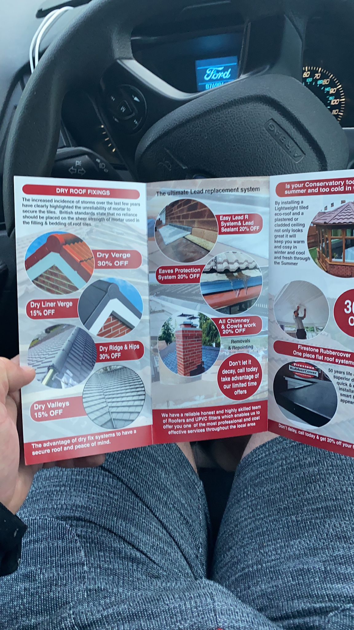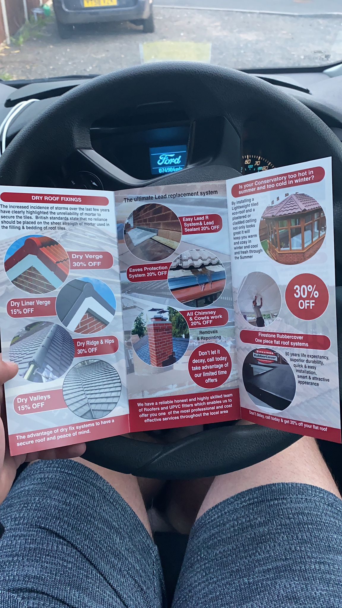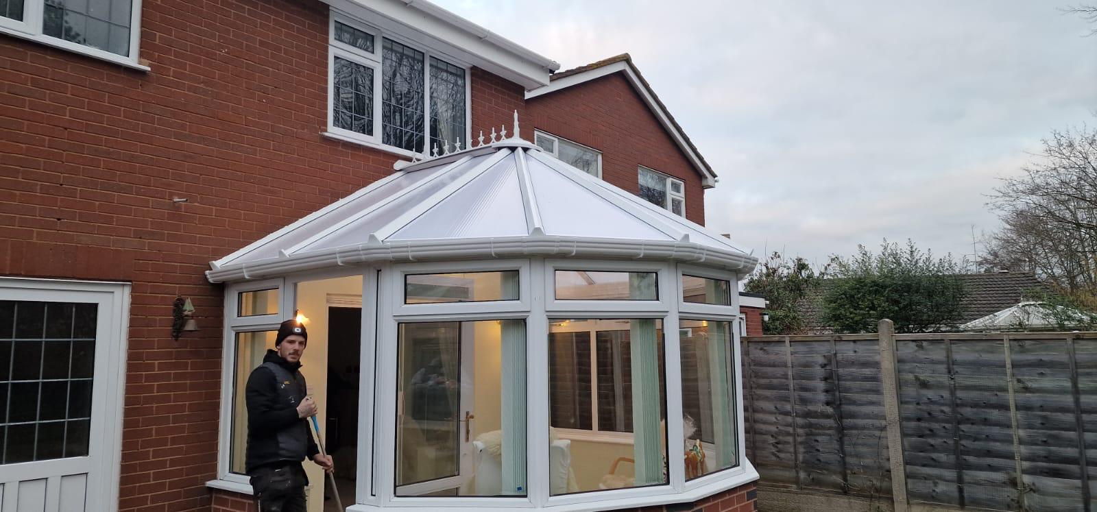 " Very professional: thorough inspection beforehand to see what was required. Quotation given in writing, detailing all aspects of work to be undertaken. Options given for flat roof repair or full replacement and main roof ridge tile system. Cleared all rubbish and hosed down drive. Main roof ridge tiles and dry verge system and flat orangery roof sorted in two days. Fast efficient service, carried out by a polite and friendly team. "