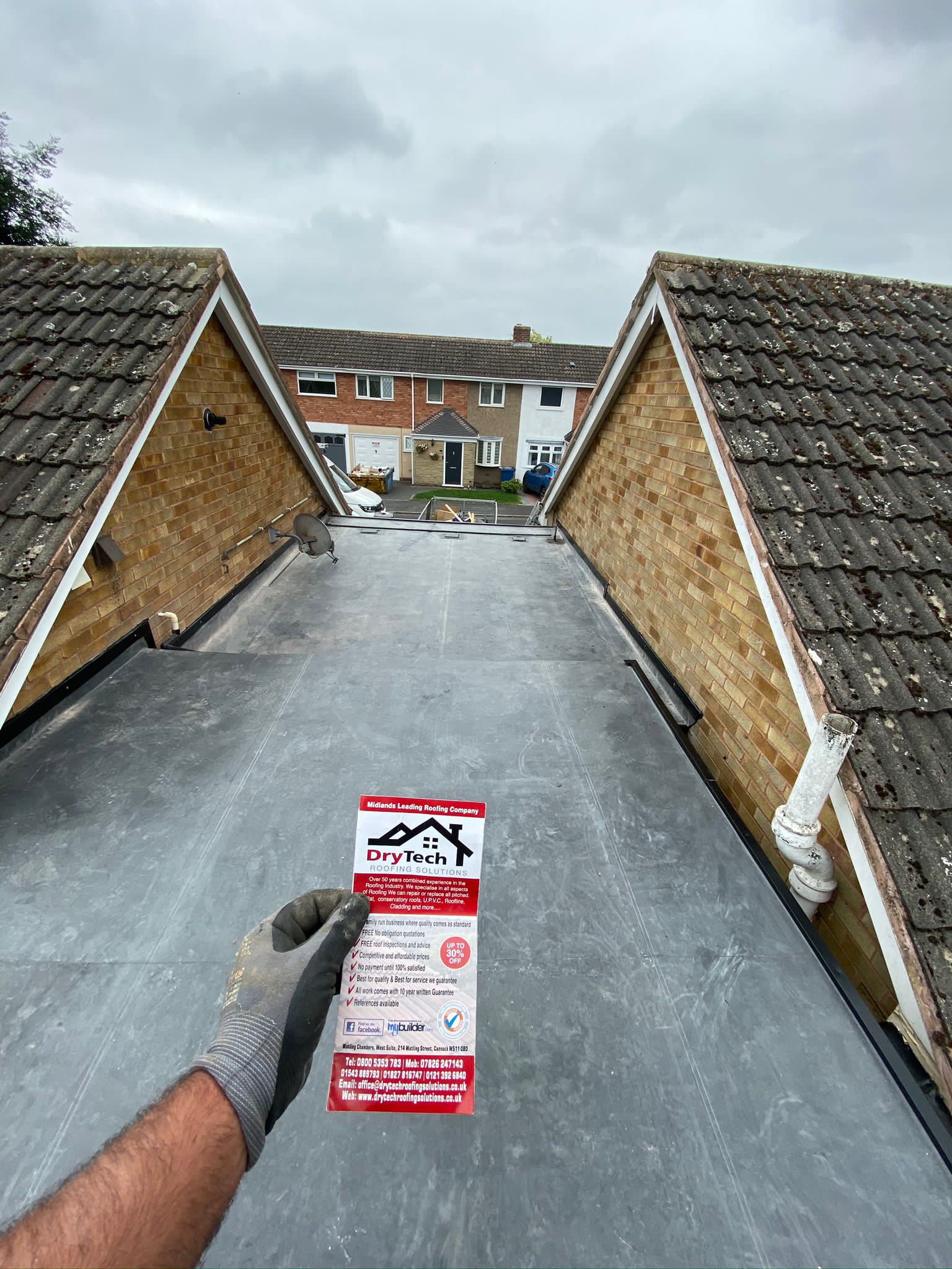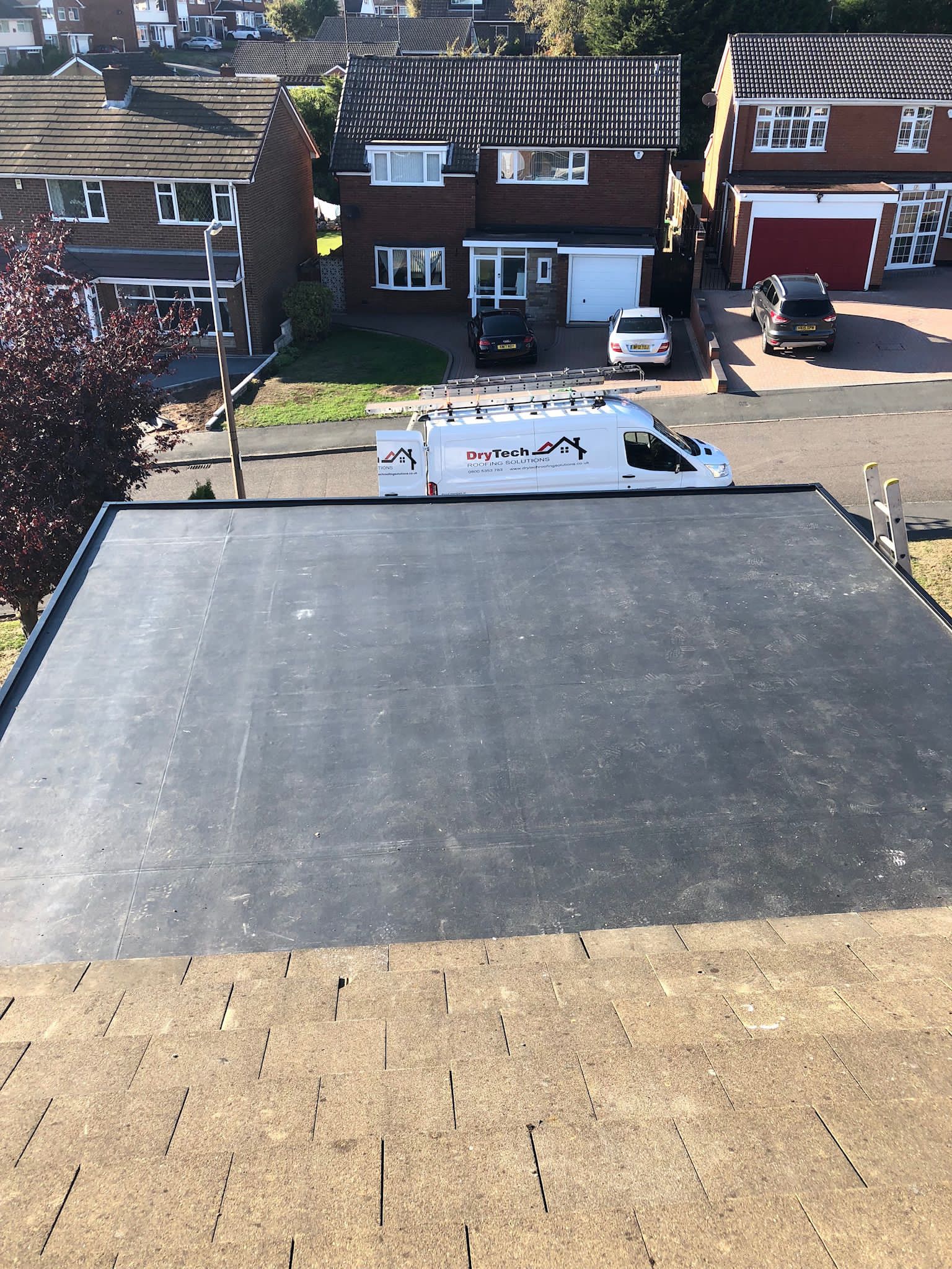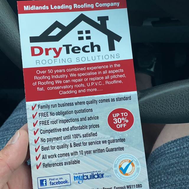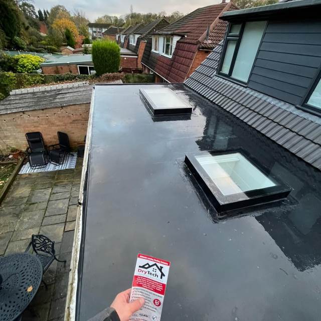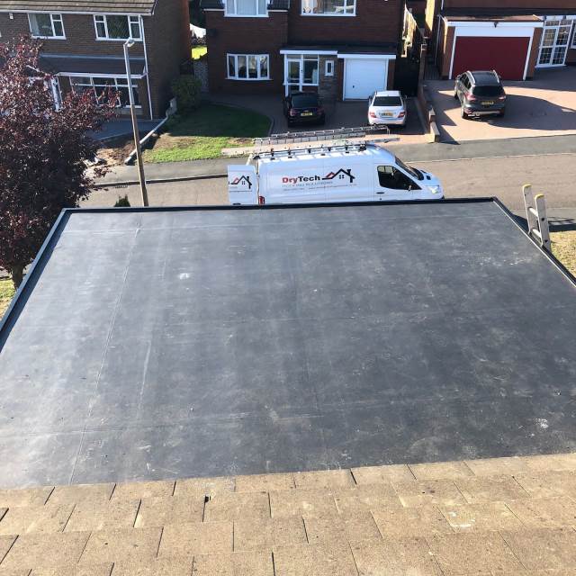 " I engaged Drytech / Stormproof in February 2023 to replace a flat roof (11 sq m) which had started leaking. They sent a team of (4-5) roofers and they completed the job in 4 hours flat. This included Removal of old roof and disposal New OSB boards Installation of Firestone Rubber membrane with appropriate adhesives Aluminium trim. Cleaning up and made good. Now time will tell as to the ultimate quality of the work, but my initial (unqualified!) assessment is that they seem to have done a good job. What I can say with certainty is that they turned up when they said they would Kept me informed throughout Were polite, cheerful and enthusiastic. Allowed me to pay by card At this point in time I would not hesitate to use them again. "