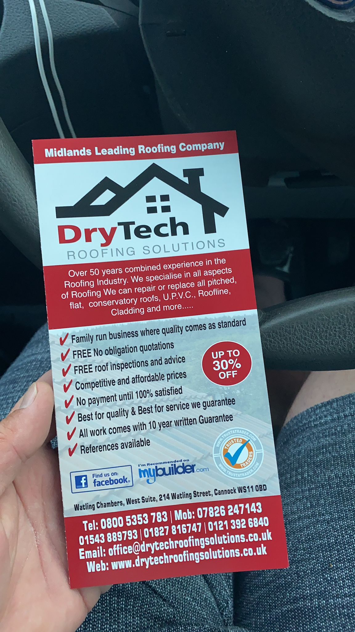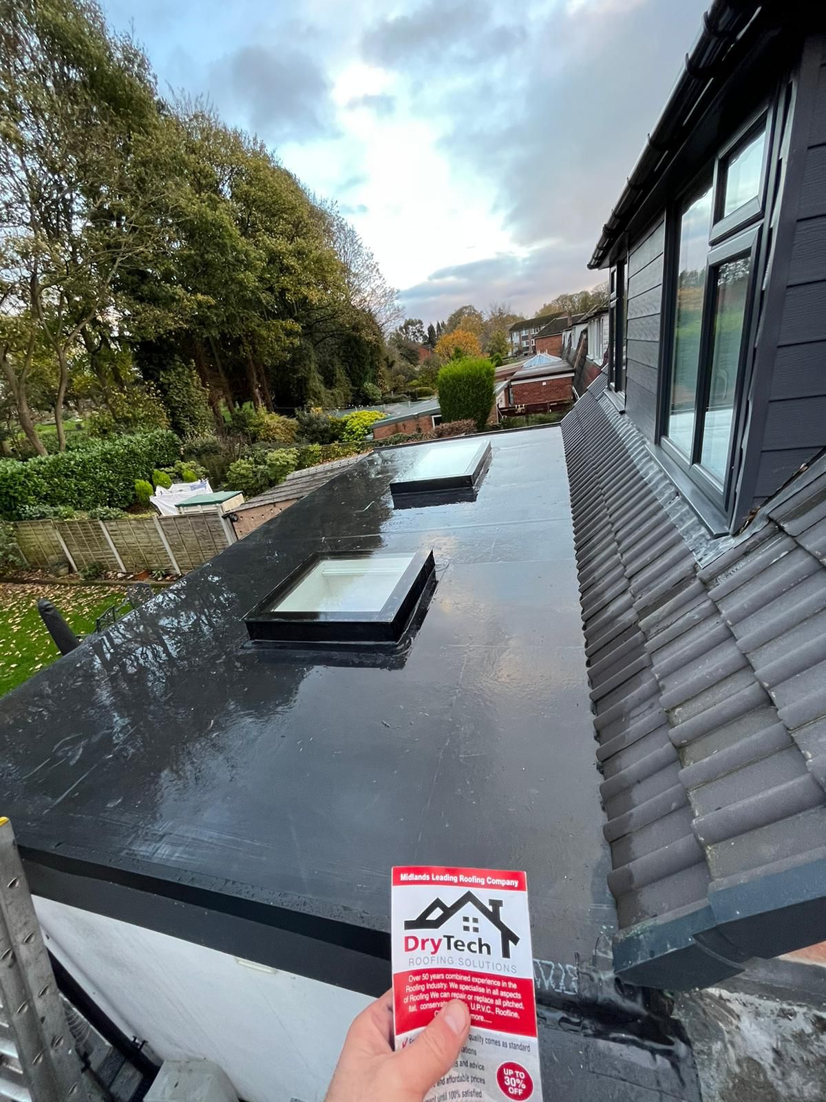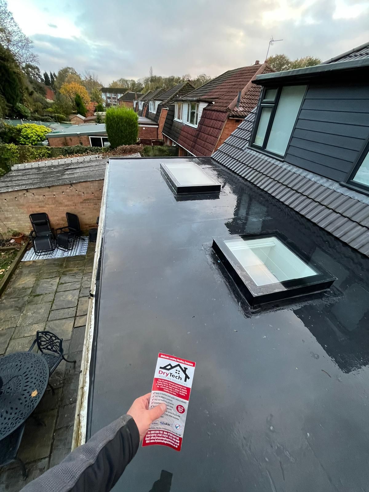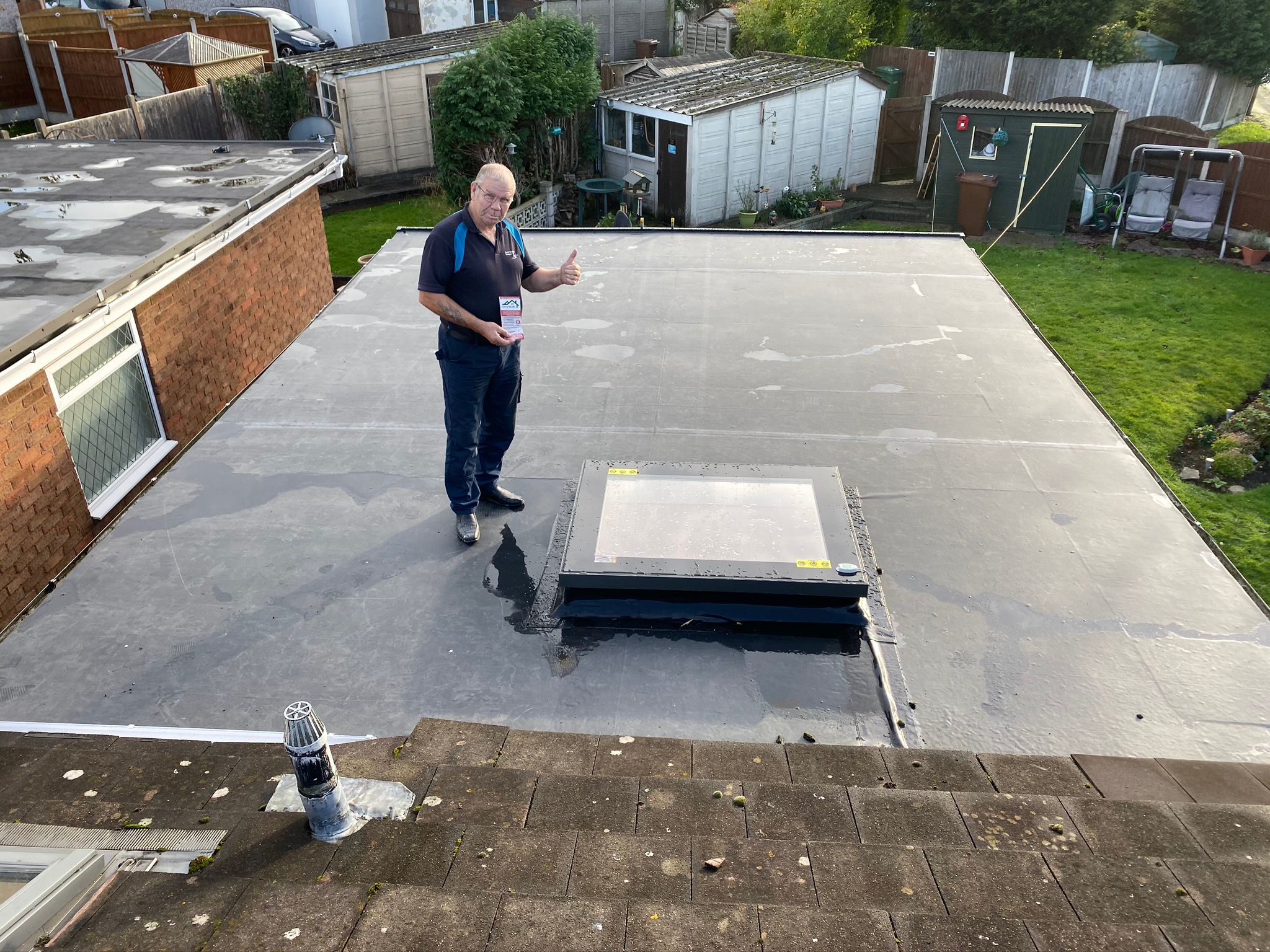 " I engaged Drytech / Stormproof in February 2023 to replace a flat roof (11 sq m) which had started leaking. They sent a team of (4-5) roofers and they completed the job in 4 hours flat. This included Removal of old roof and disposal New OSB boards Installation of Firestone Rubber membrane with appropriate adhesives Aluminium trim. Cleaning up and made good. Now time will tell as to the ultimate quality of the work, but my initial (unqualified!) assessment is that they seem to have done a good job. What I can say with certainty is that they turned up when they said they would Kept me informed throughout Were polite, cheerful and enthusiastic. Allowed me to pay by card At this point in time I would not hesitate to use them again. "